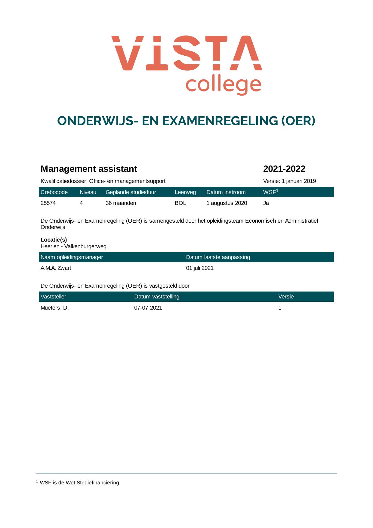 Management assistant 1S25574BV3V1 in cohort 2021-2022