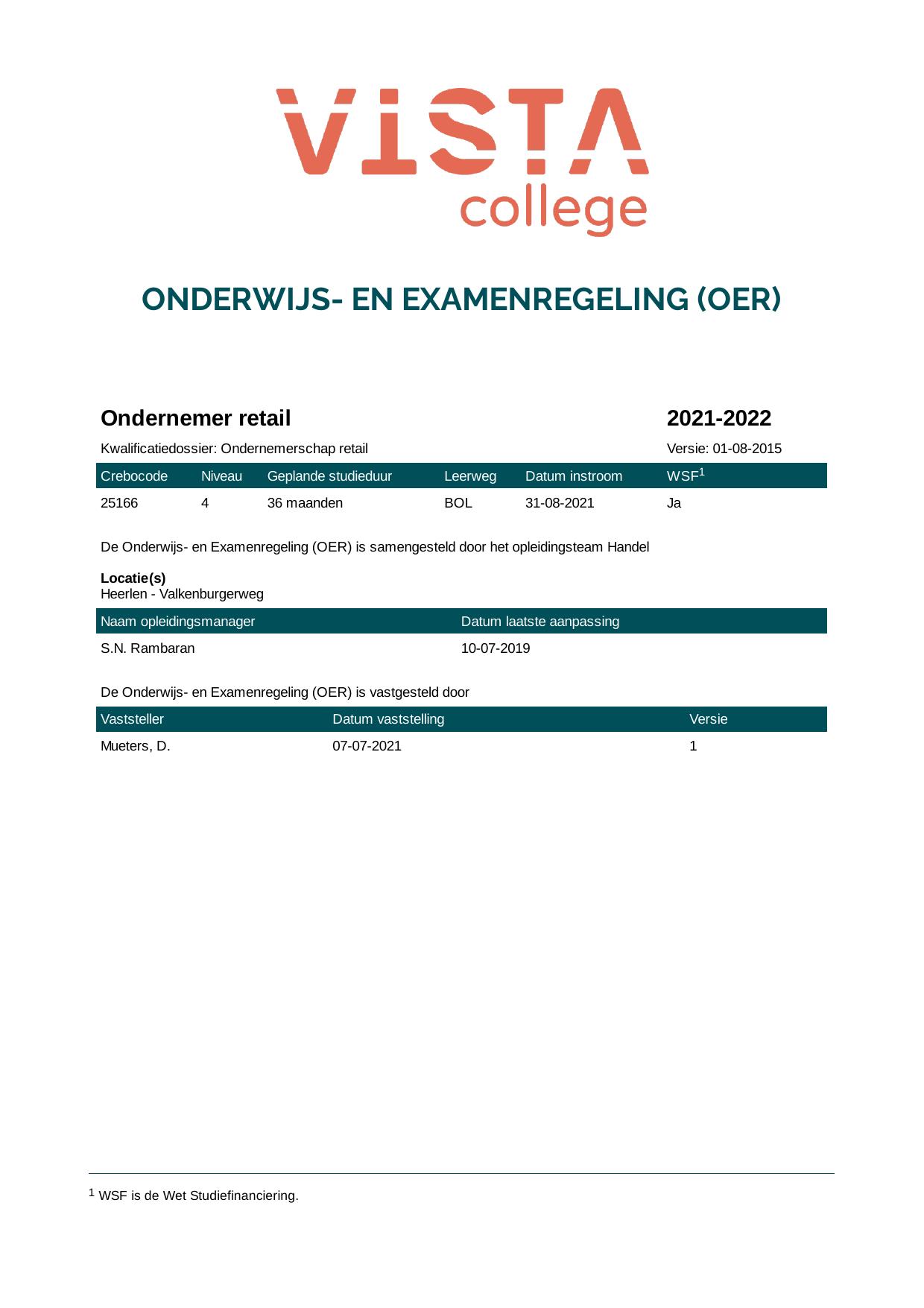 Ondernemer retail 25166O1S in cohort 2021-2022
