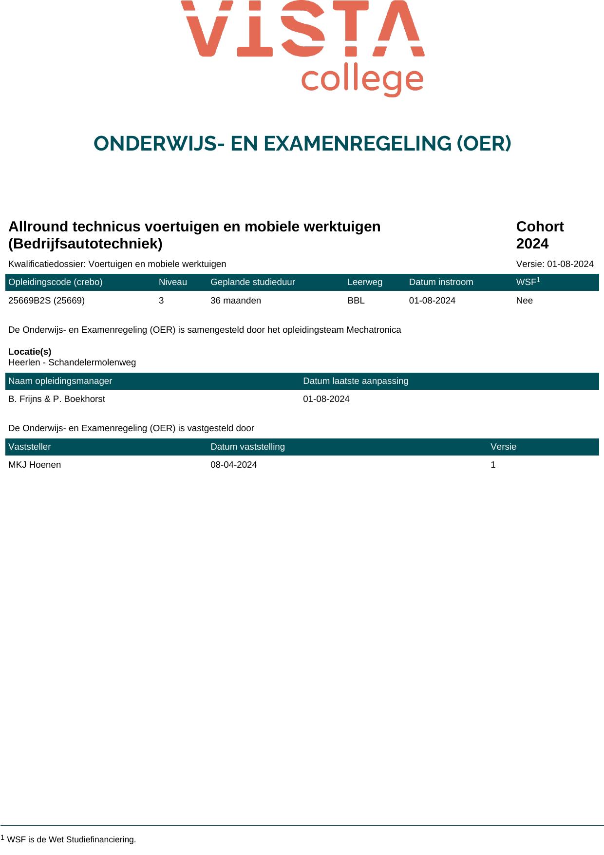 Allround technicus voertuigen en mobiele werktuigen (Automotive) 25669O1S in cohort 2024-2025