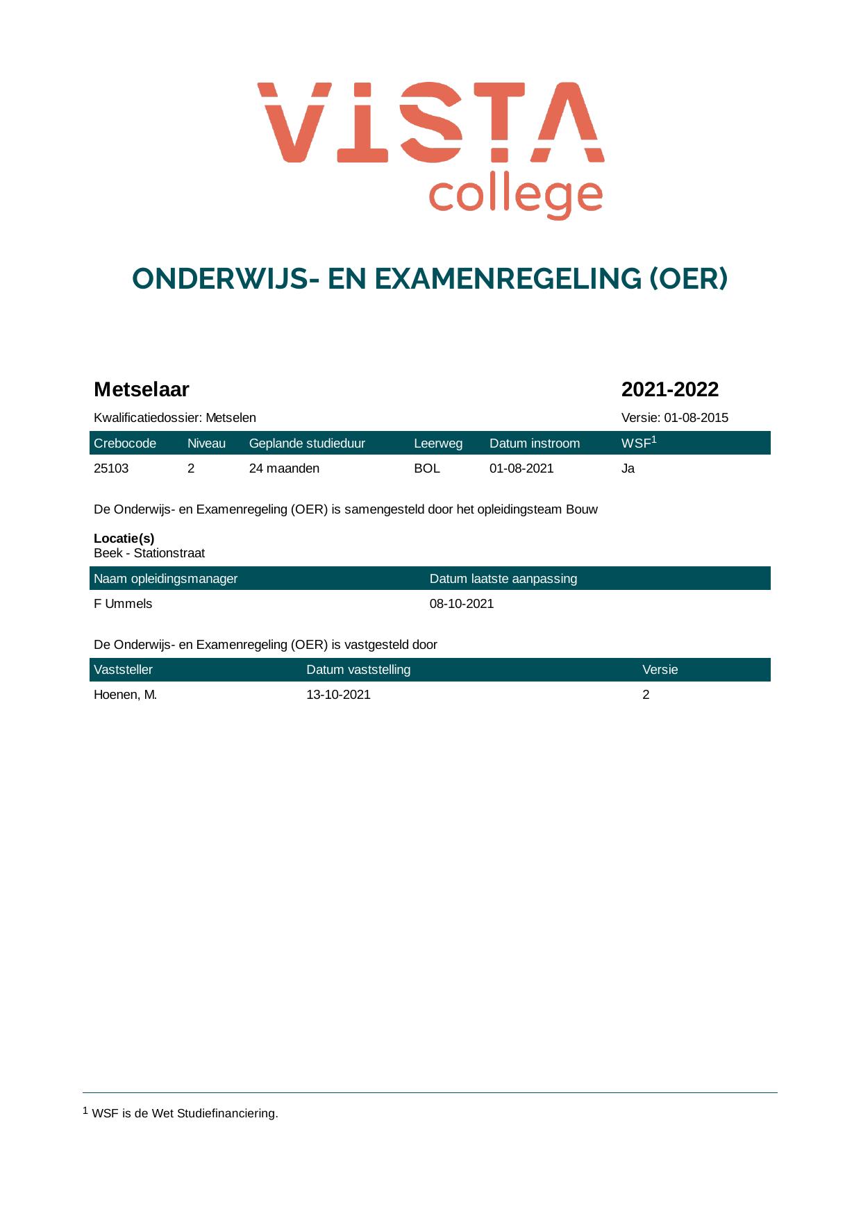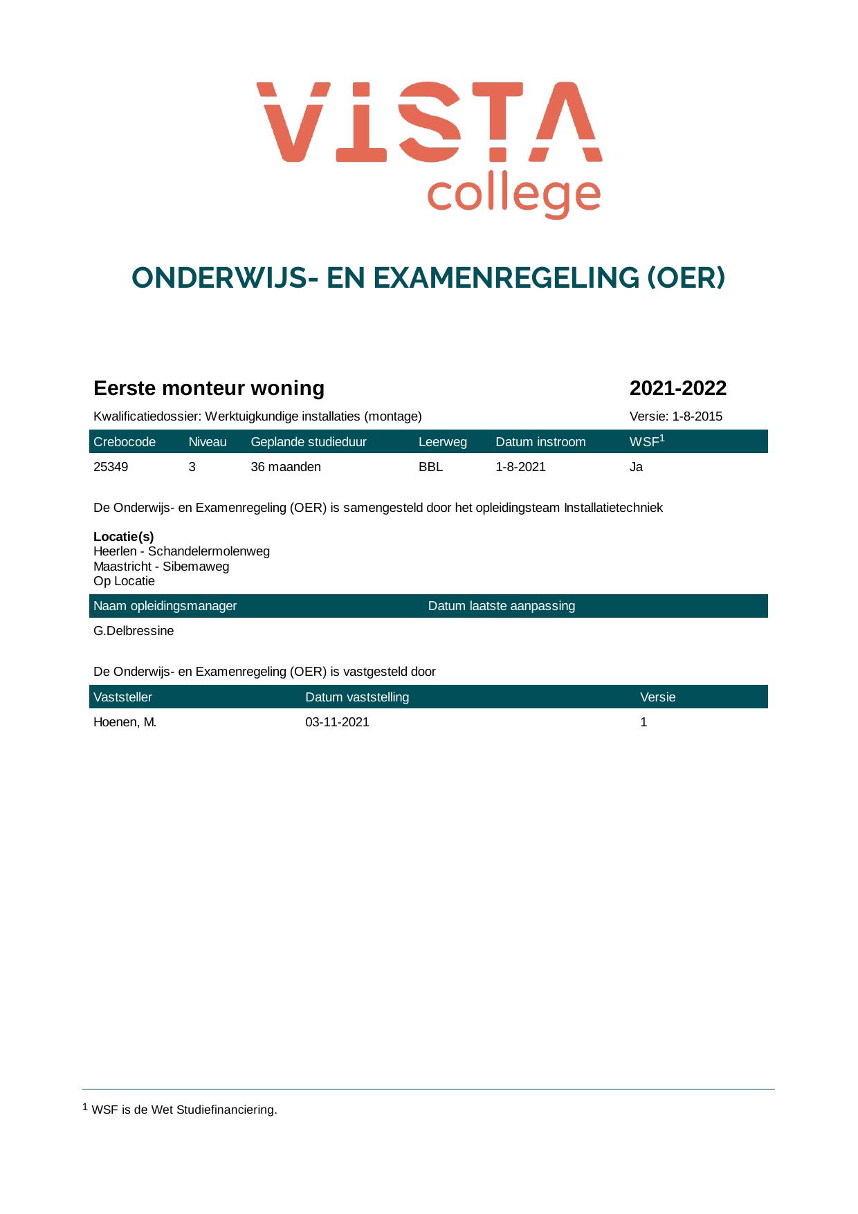 Eerste monteur woning 25349B1S in cohort 2021-2022