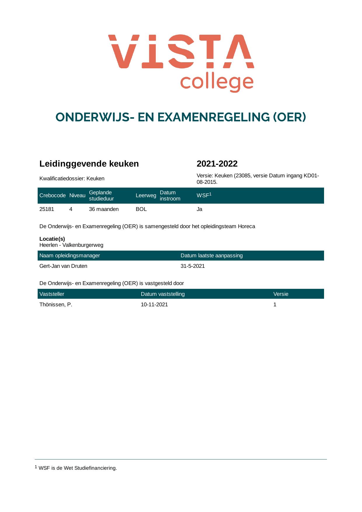 Leidinggevende keuken 25181O1S in cohort 2021-2022