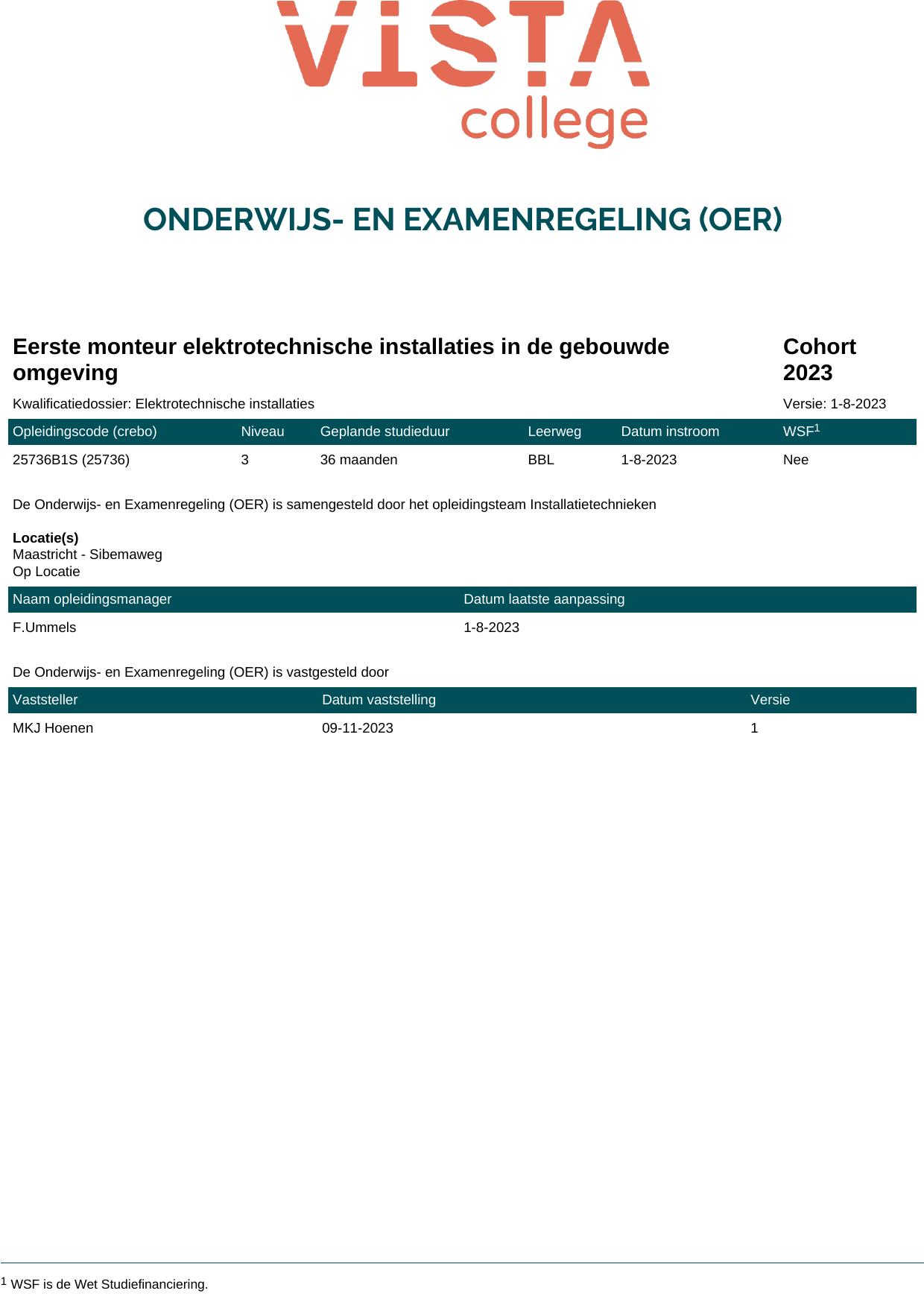 Eerste monteur elektrotechnische installaties in de gebouwde omgeving 25736B1S in cohort 2023-2024