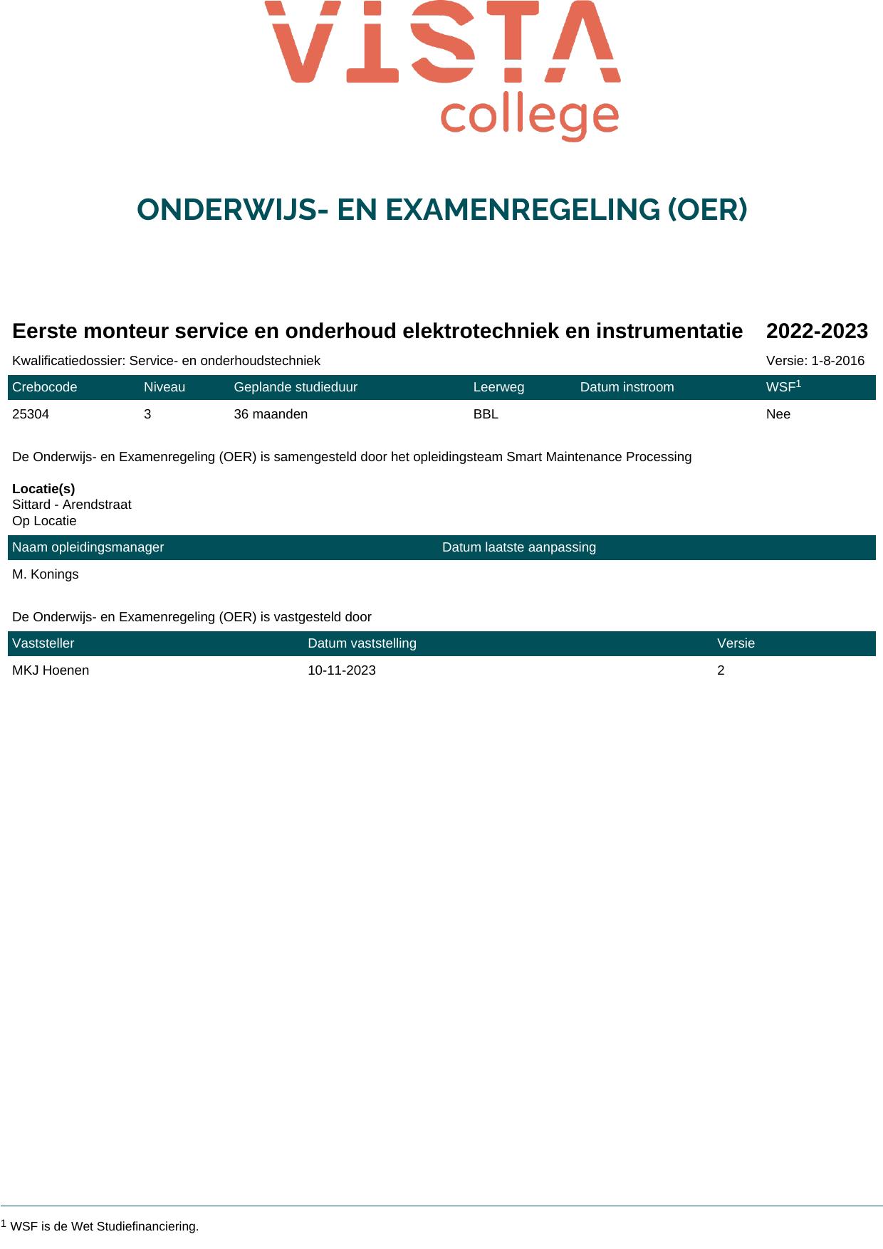 Eerste monteur service en onderhoud elektrotechniek en instrumentatie 25304B1S in cohort 2022-2023