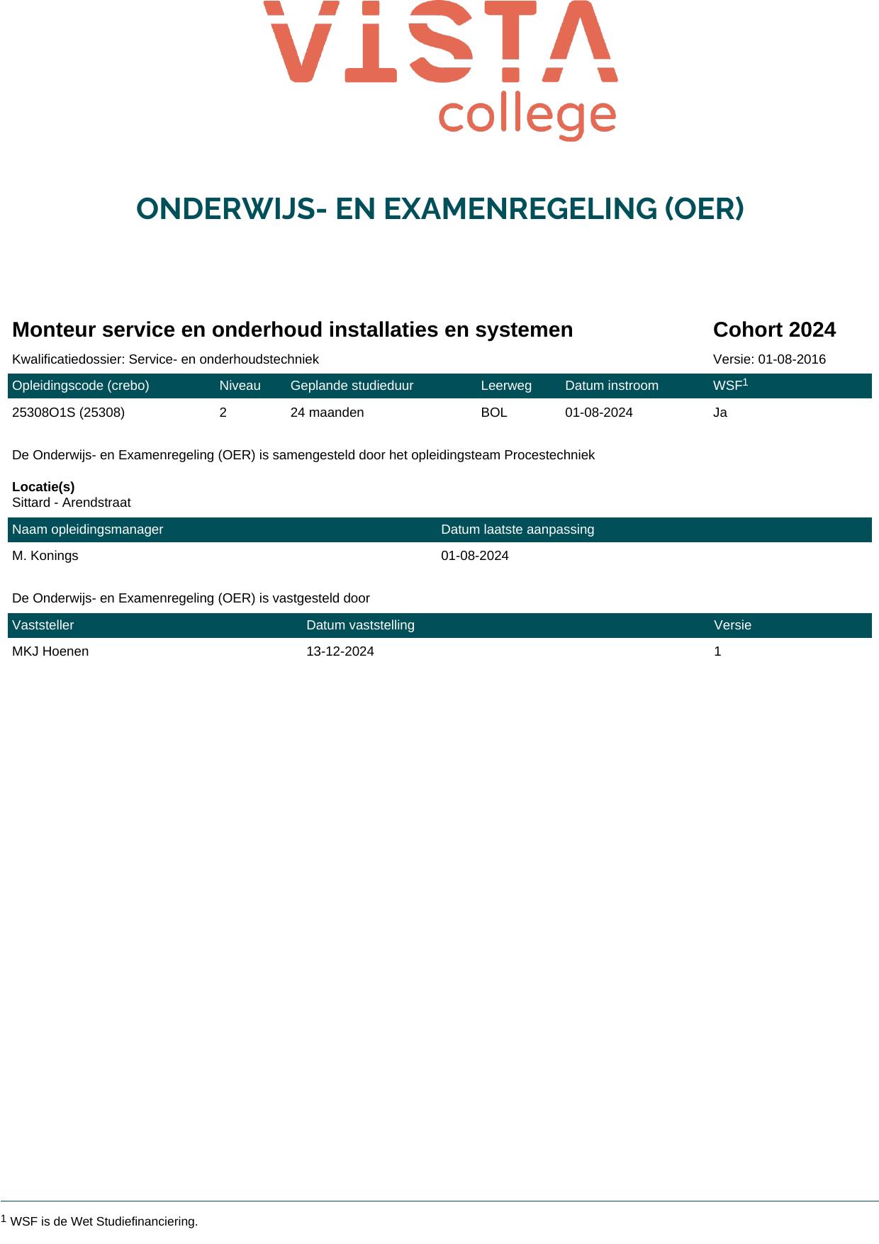 Monteur service en onderhoud werktuigbouwkunde 25308O1S in cohort 2024-2025