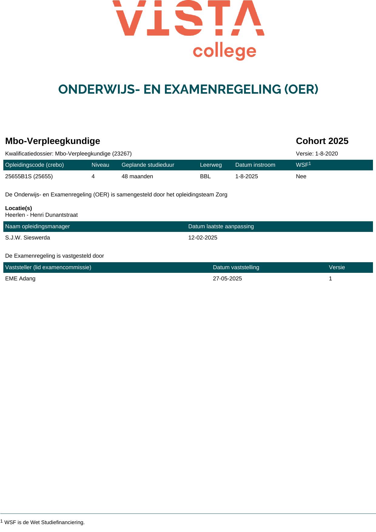 Mbo-Verpleegkundige Ziekenhuis 25655O5S in cohort 2025-2026