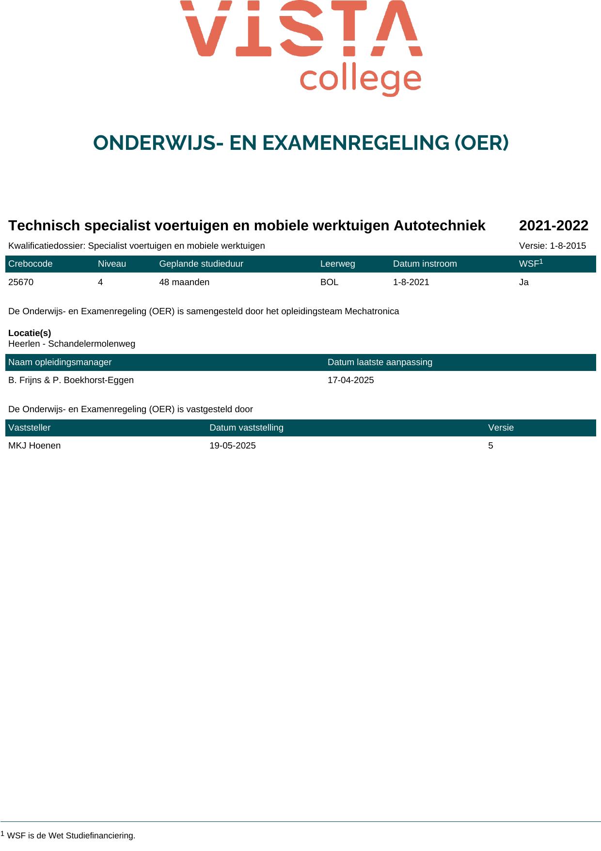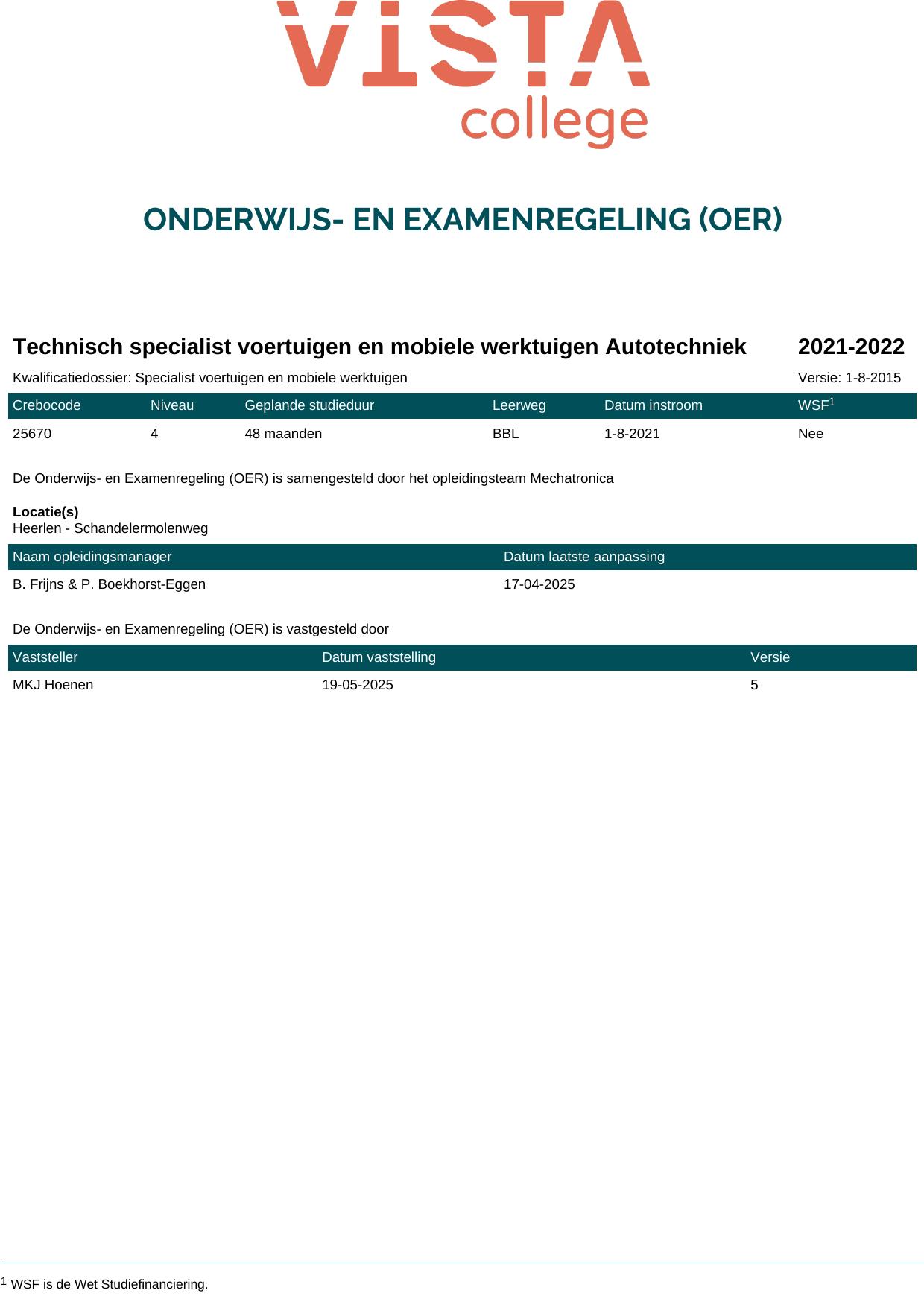 Technisch specialist voertuigen en mobiele werktuigen Autotechniek 25670B1S in cohort 2021-2022