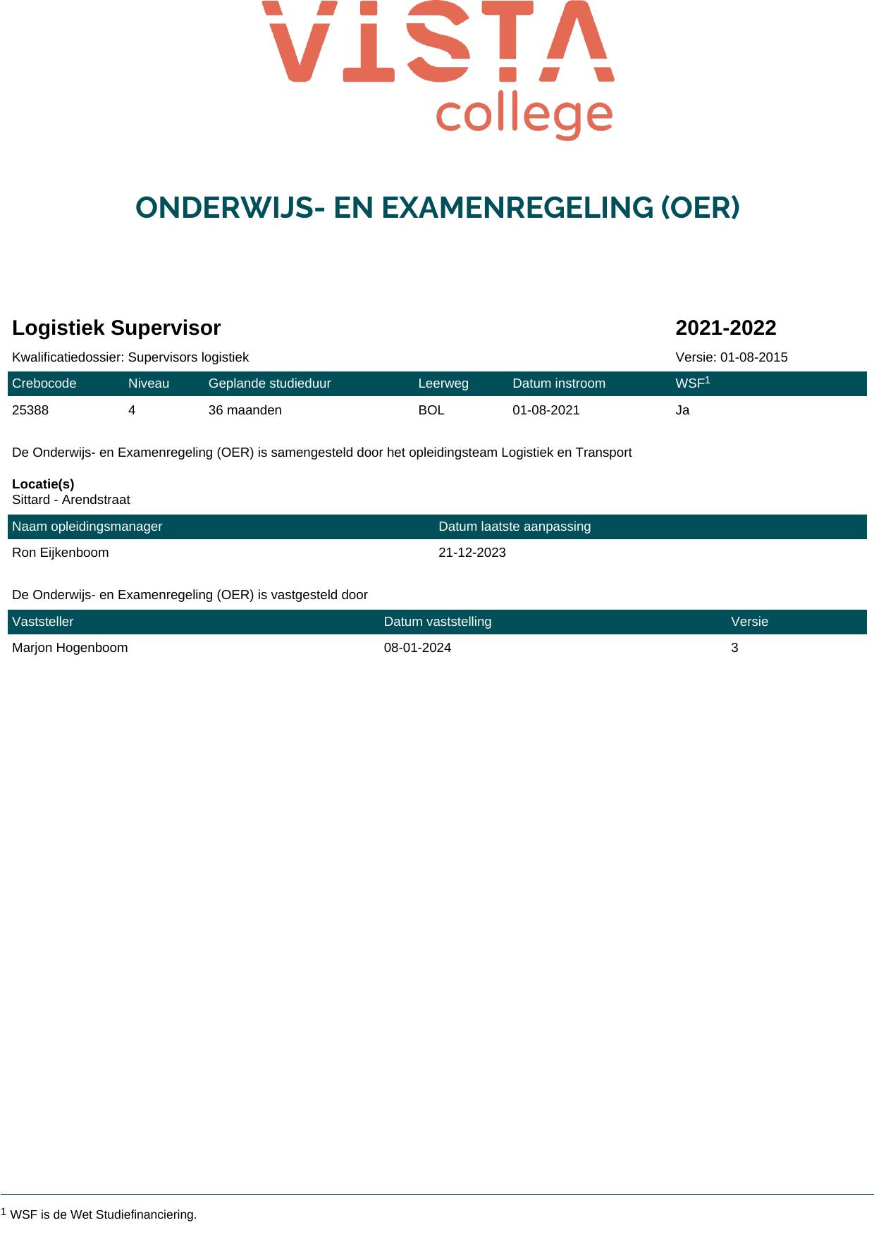 Logistiek Supervisor 1L25388BB3V1 in cohort 2021-2022