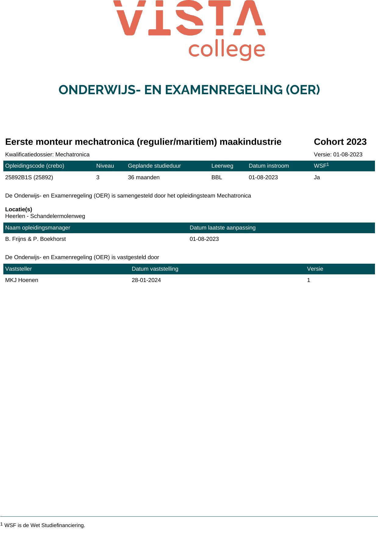 Eerste monteur mechatronica (regulier/maritiem) maakindustrie 25892B1S in cohort 2023-2024