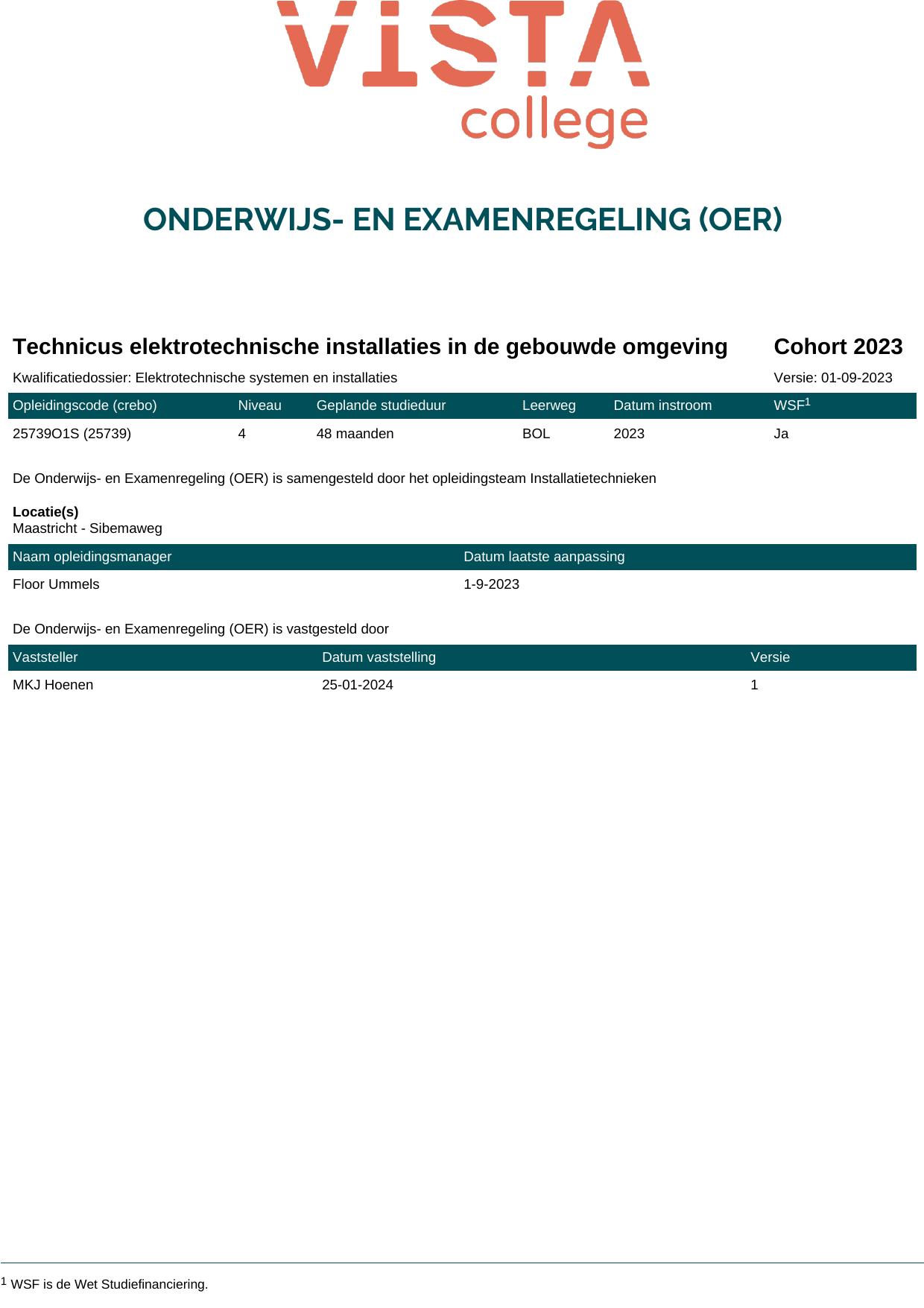 Technicus elektrotechnische installaties in de gebouwde omgeving 25739O1S in cohort 2023-2024