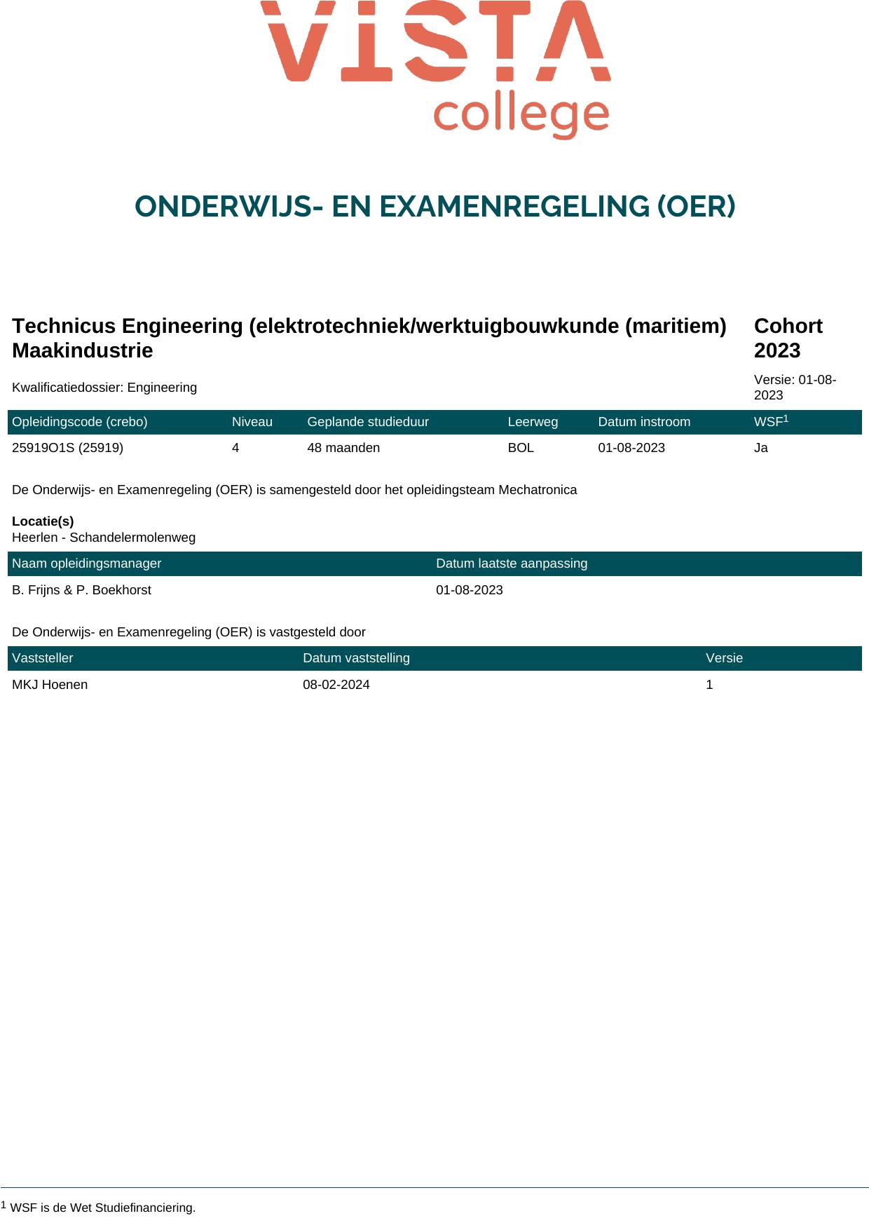 Technicus Engineering (elektrotechniek/werktuigbouwkunde (maritiem) Maakindustrie 25919O1S in cohort 2023-2024