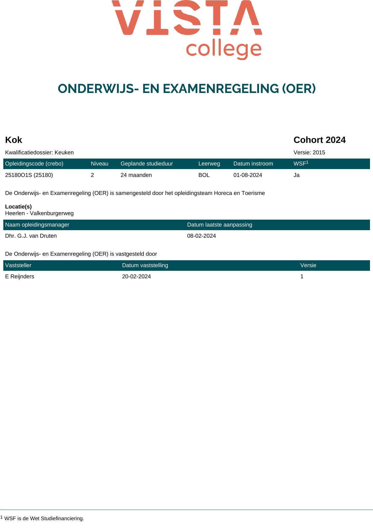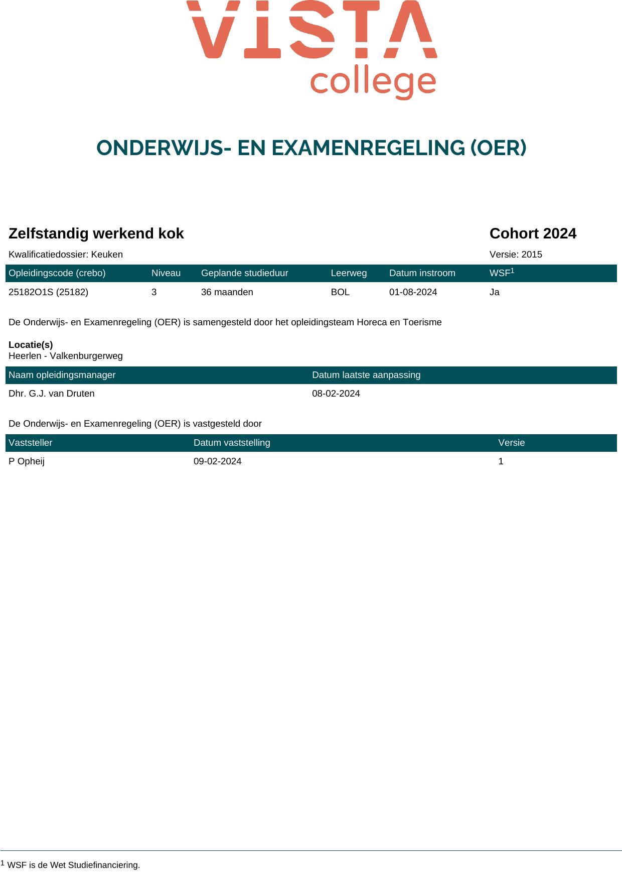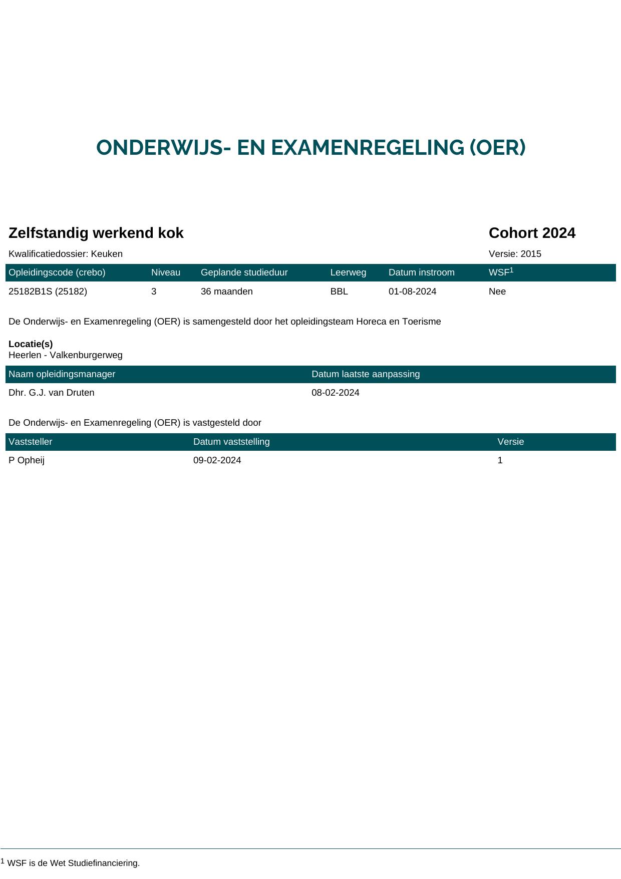 Zelfstandig werkend kok 25182O1S in cohort 2024-2025