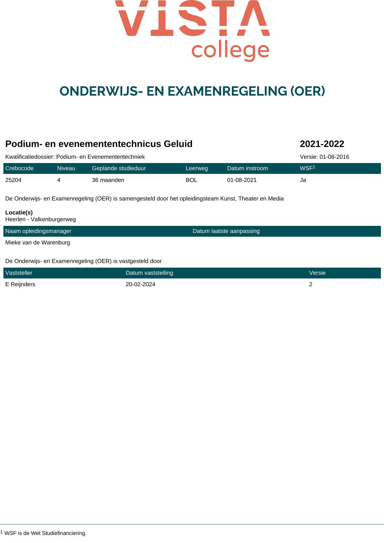 Podium- en evenemententechnicus Geluid 25204O1S in cohort 2021-2022