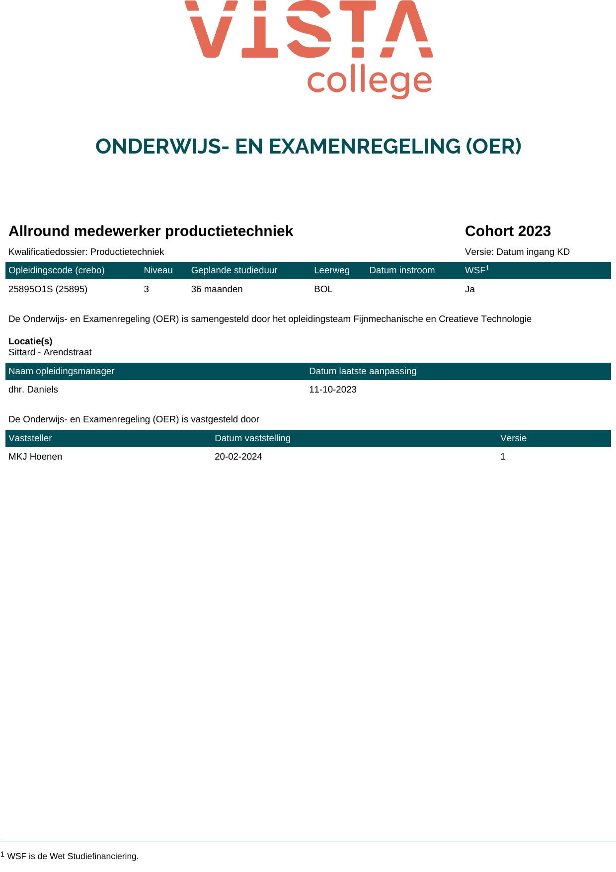 Allround medewerker productietechniek 25895O1S in cohort 2023-2024