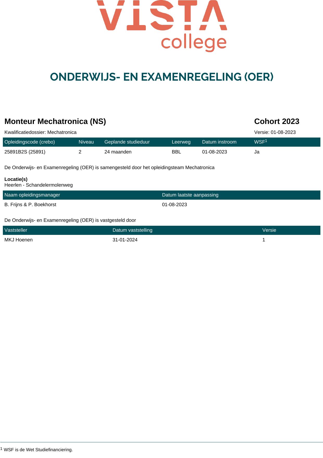Monteur Mechatronica (NS) 25891B2S in cohort 2023-2024