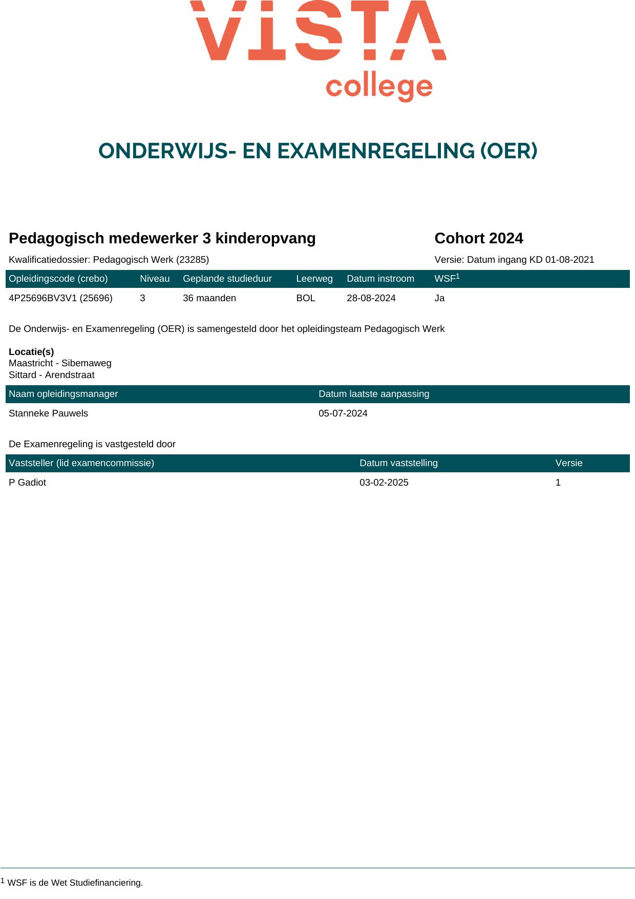 Pedagogisch medewerker 3 kinderopvang 4P25696BV3V1 in cohort 2024-2025