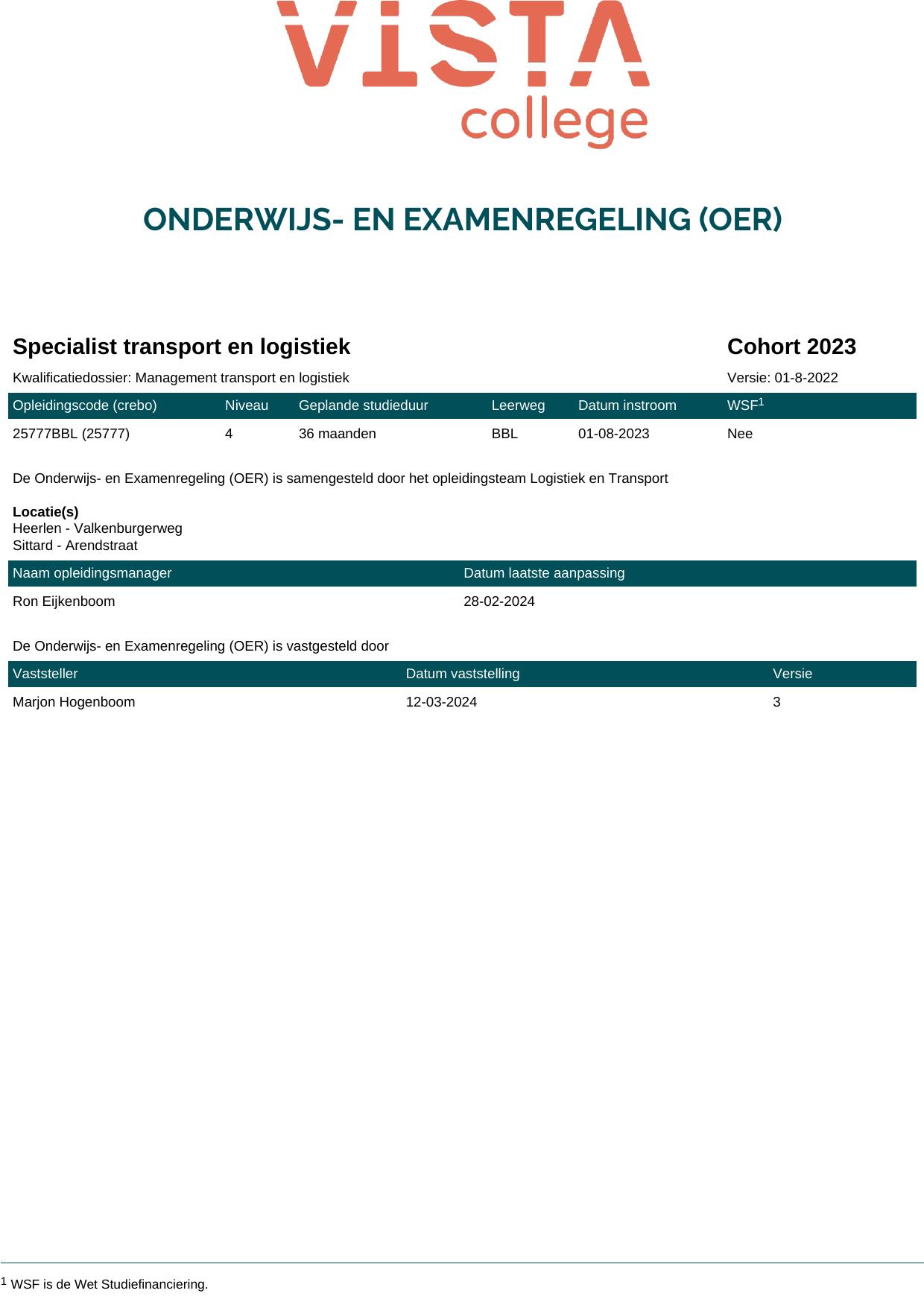 Specialist transport en logistiek 25777BBL in cohort 2023-2024