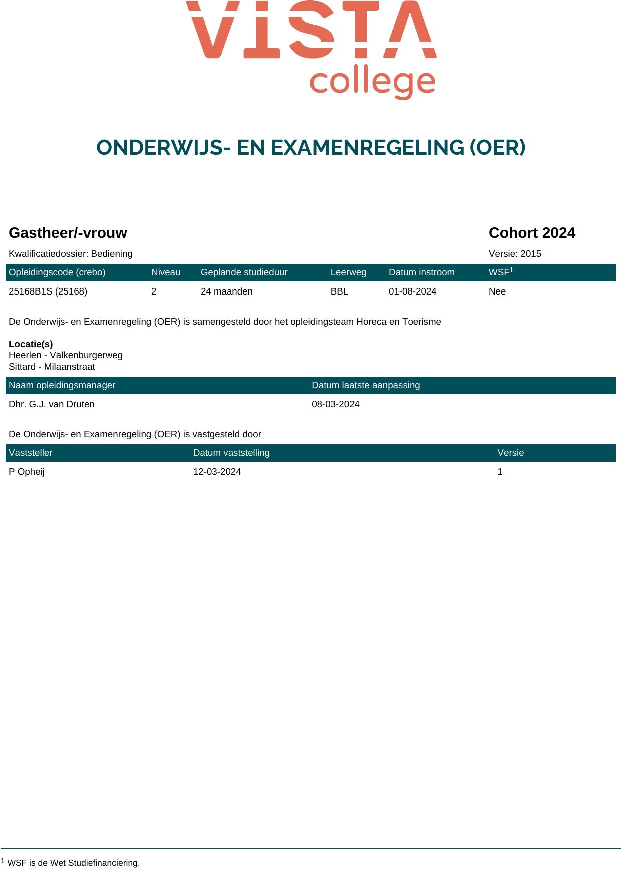 Gastheer/-vrouw 25168B1S in cohort 2024-2025