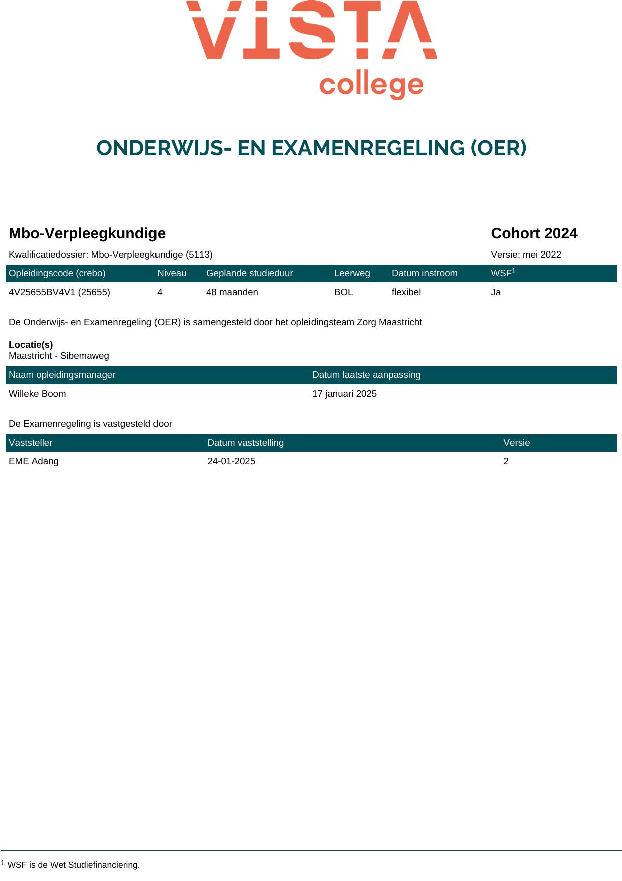 Mbo-Verpleegkundige 4V25655BV4V1 in cohort 2024-2025