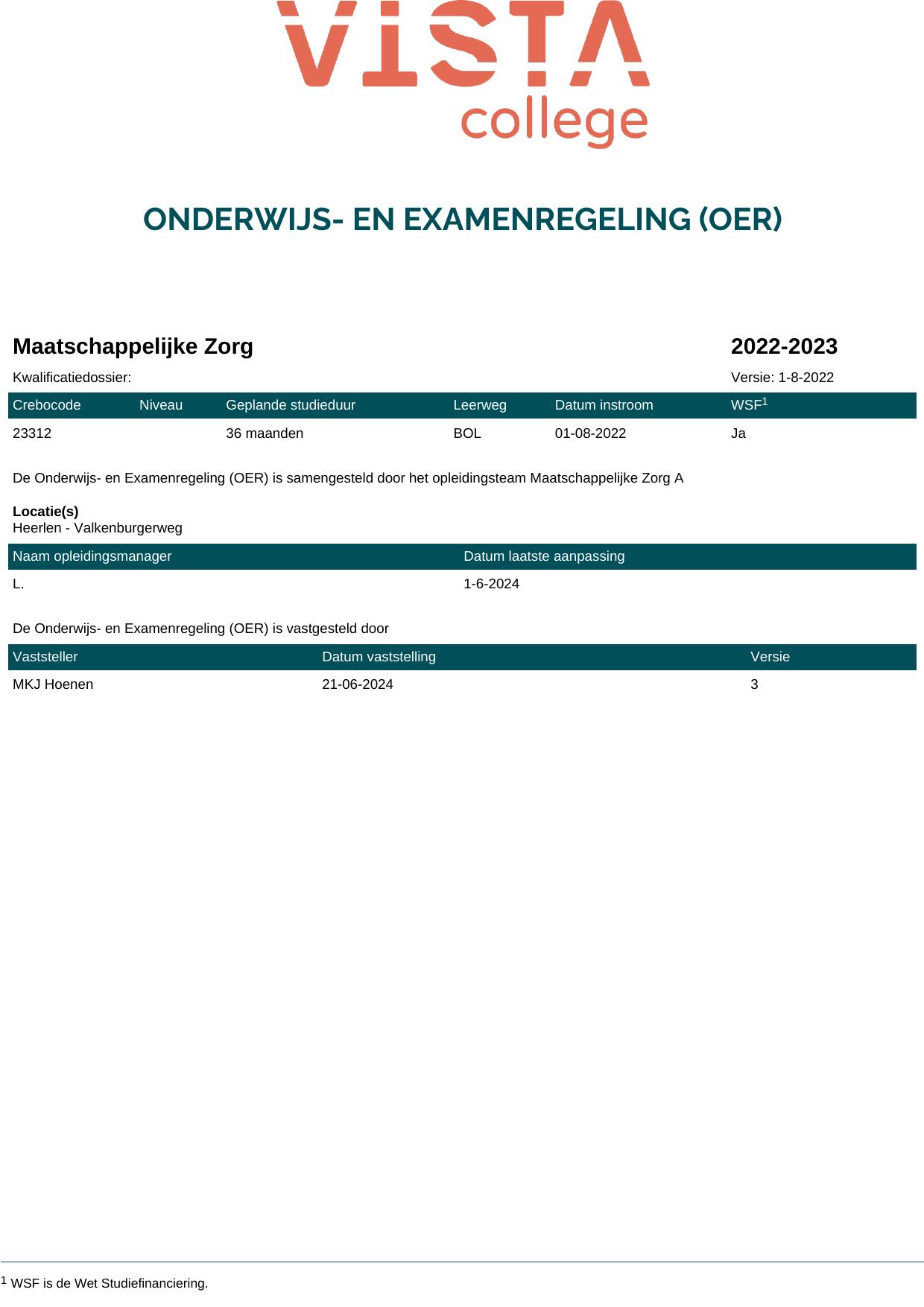 Maatschappelijke Zorg 23312O1S in cohort 2022-2023